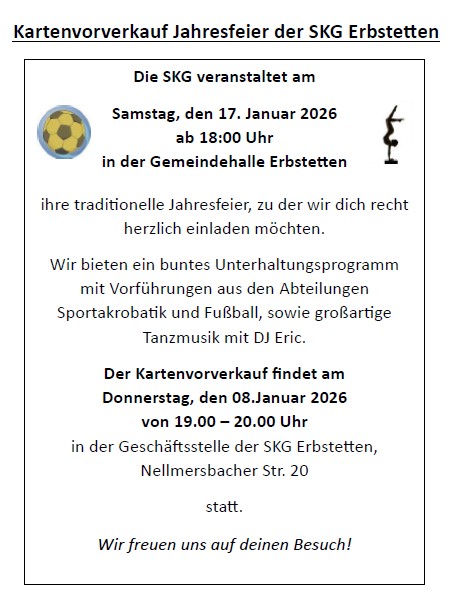 herzlich willkommen auf der offiziellen Website der SKG Erbstetten. Hier finden Sie alle Informationen, wie Trainingszeiten und Kontaktdaten unserer einzelnen Abteilungen.